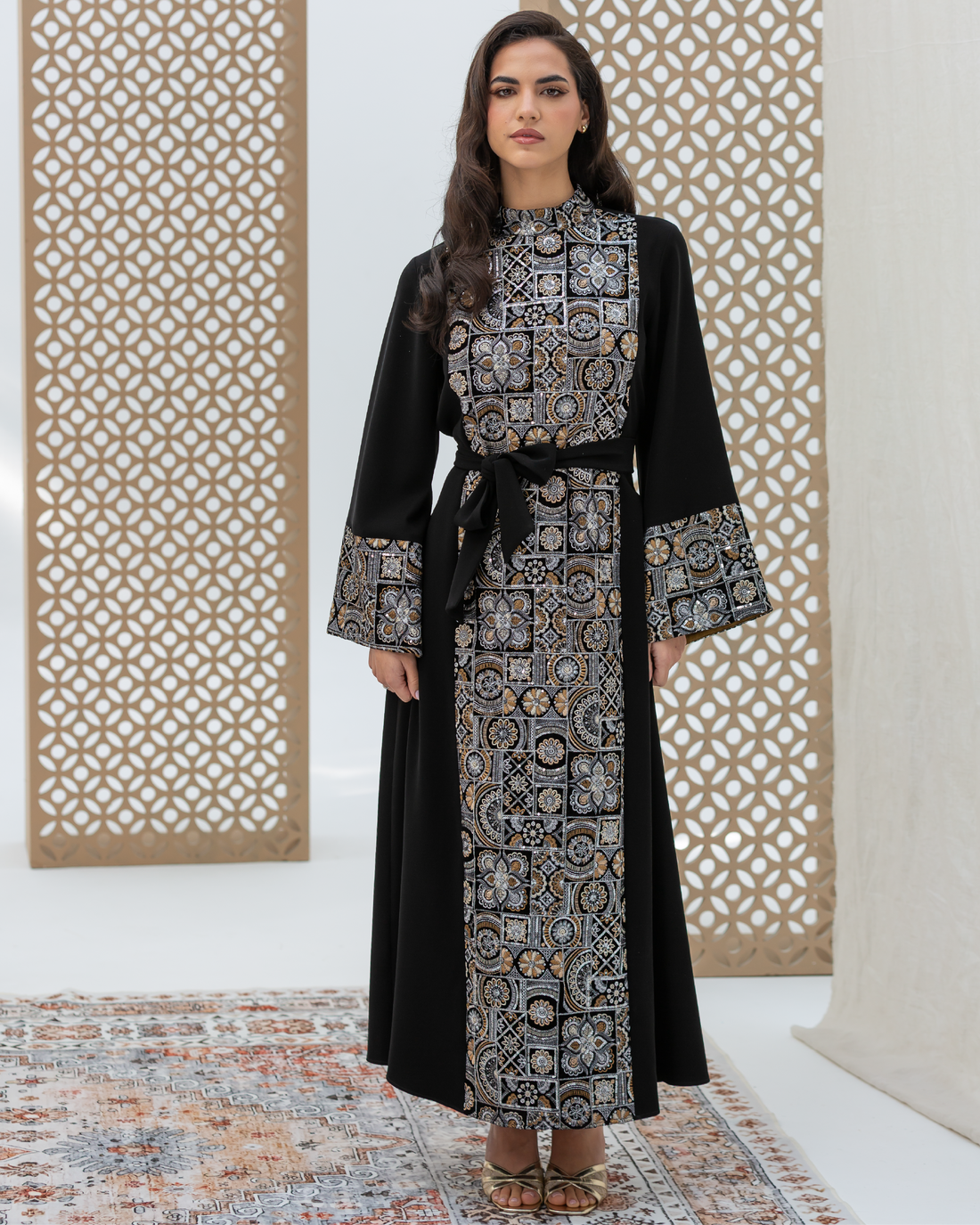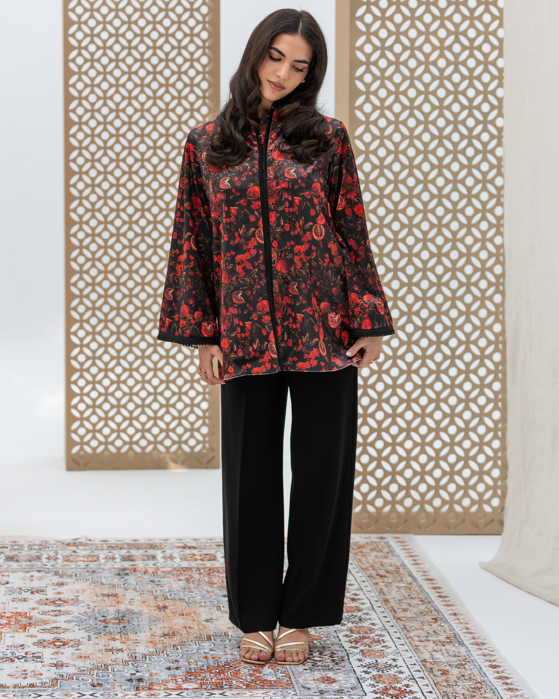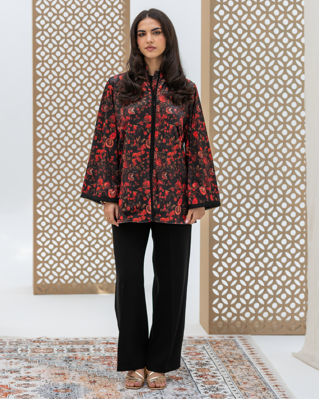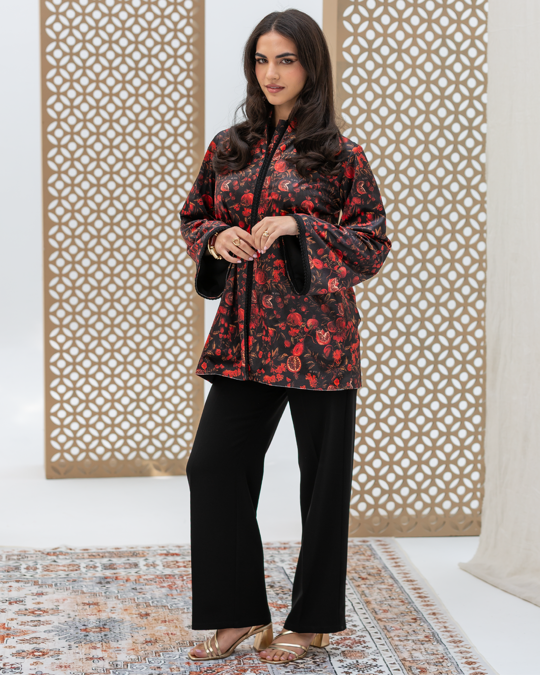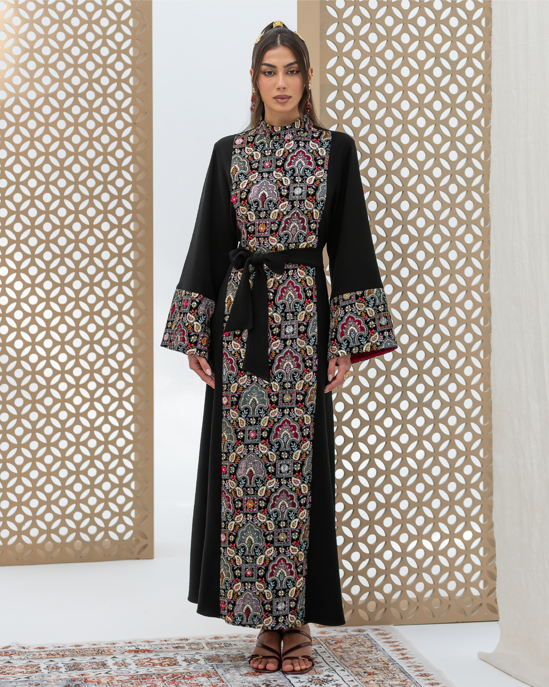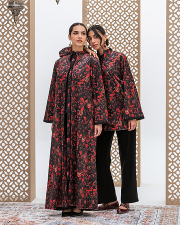 Jullanar Velvet Abaya Crafted from Stretchy Velvet Featuring an Exclusive Rozan Pomegranate Print. Fully Lined...