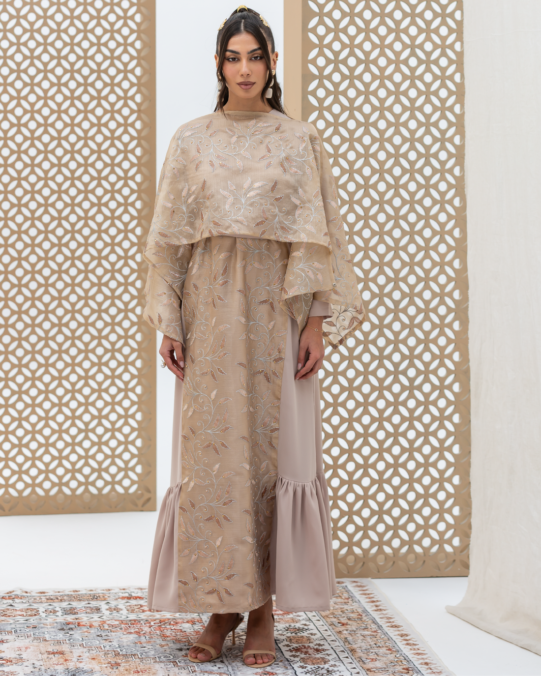 Beige Full-Length Dress Made of Dazzle Glitter Crepe, Fully Lined for a Luxurious Finish. Designed...