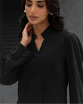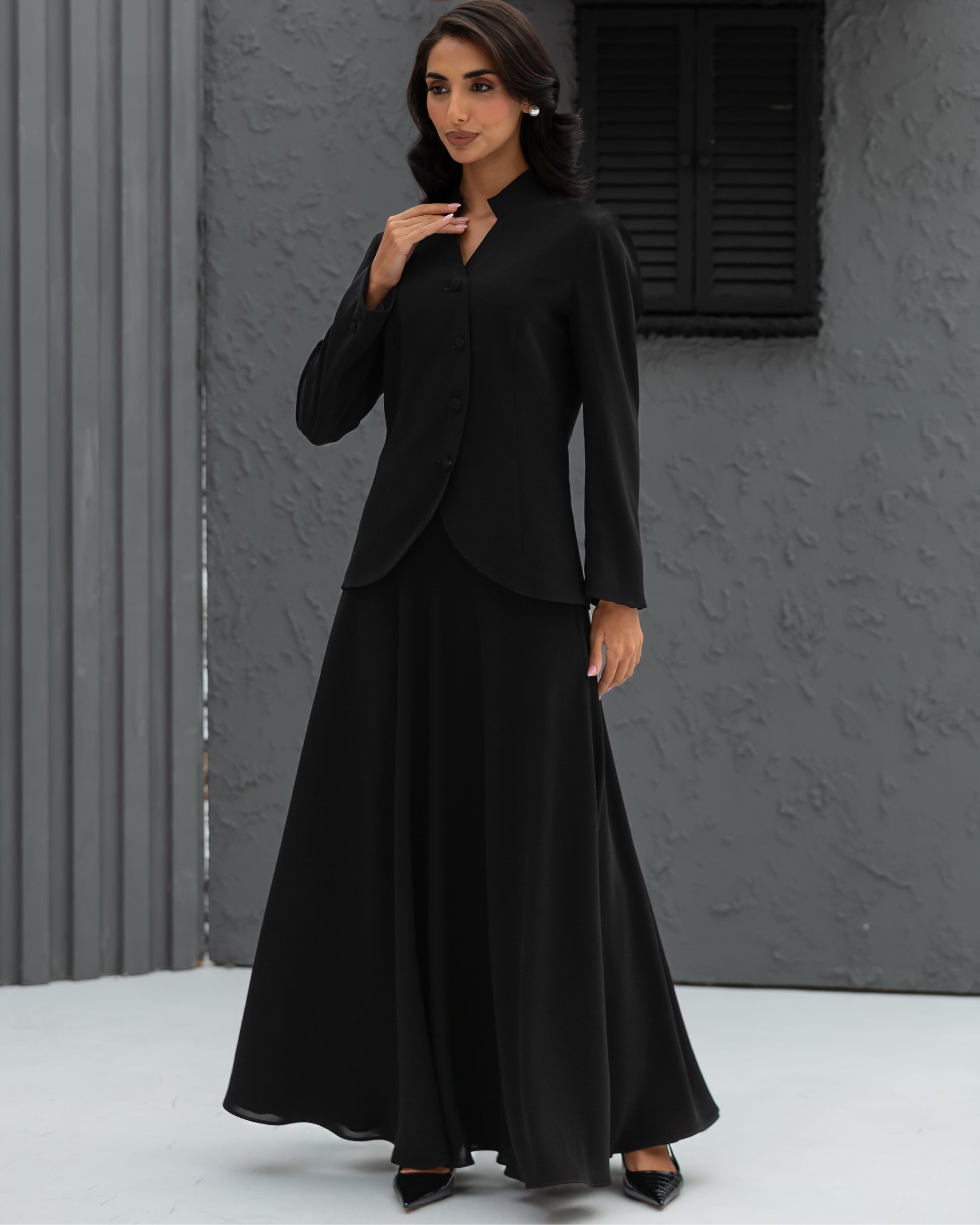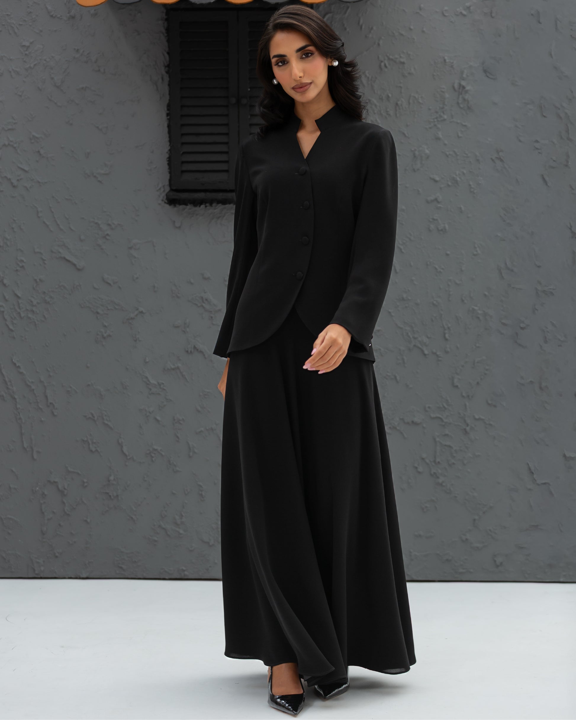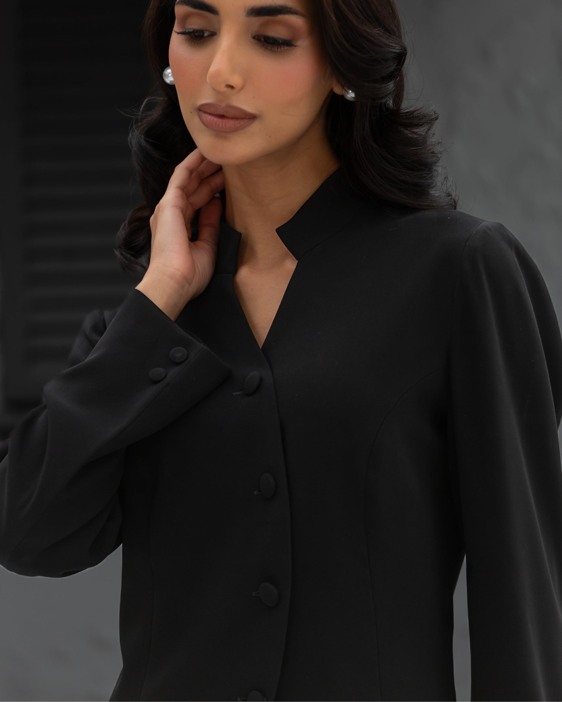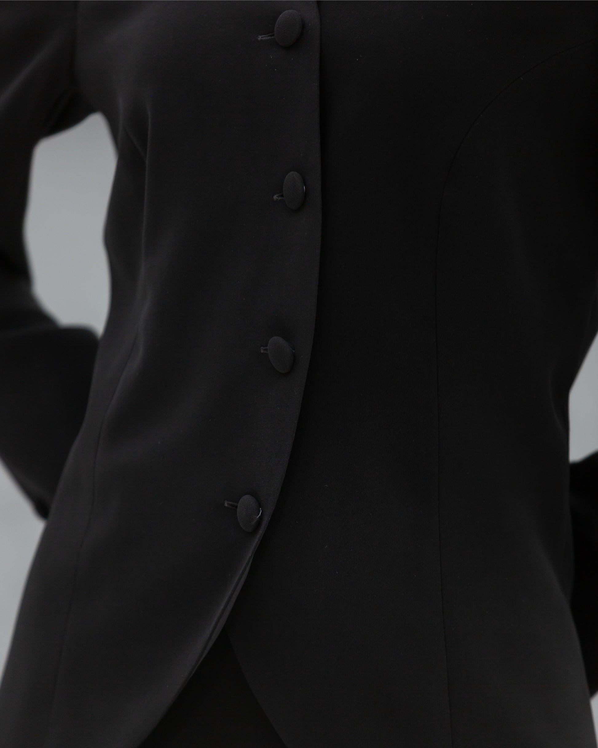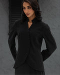 Black Round Cut Fared Blazer with 4 Pressed Buttons Closure and Peplums