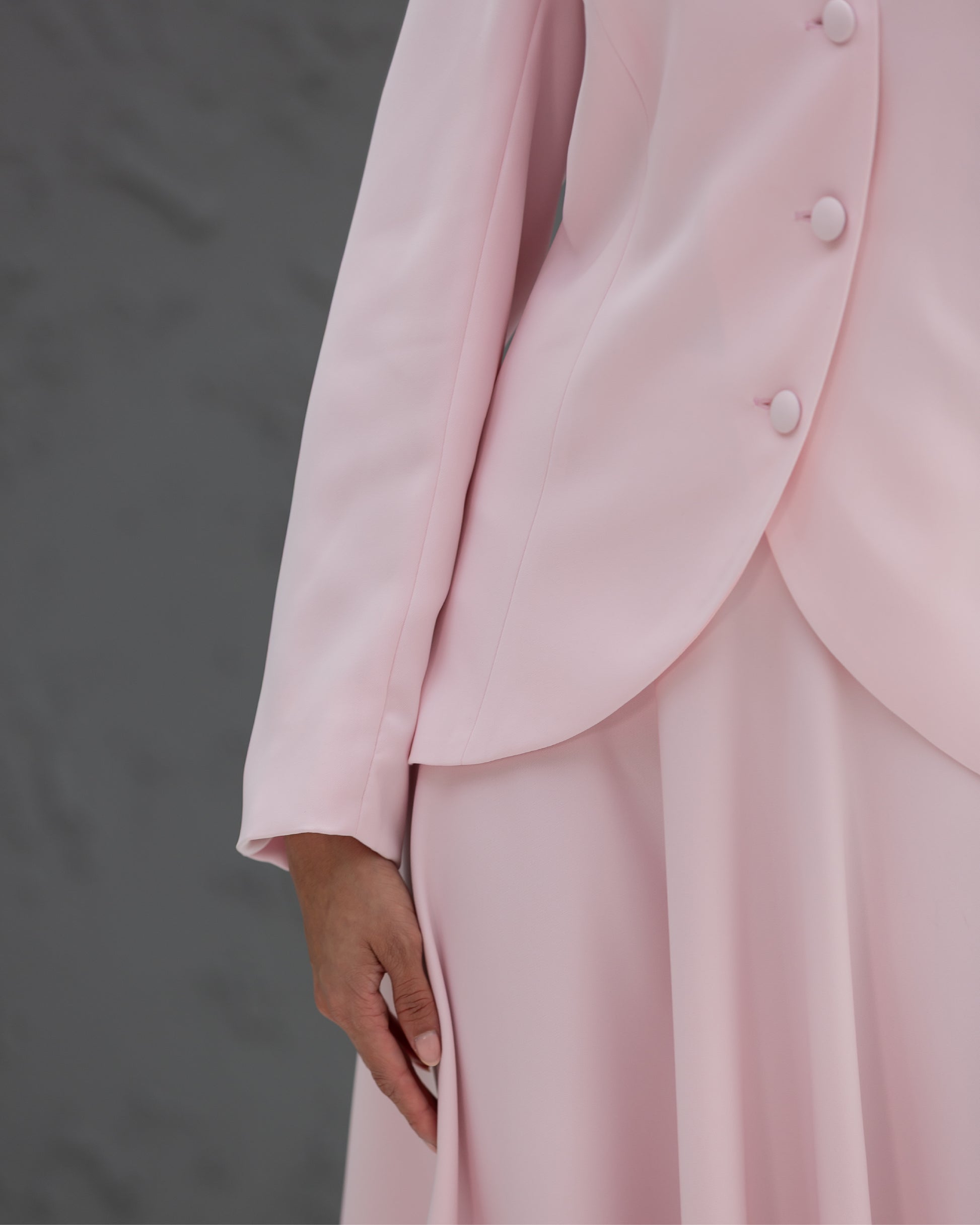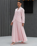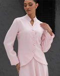 Pink Round Cut Fared Blazer with 4 Pressed Buttons Closure and Peplums