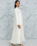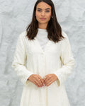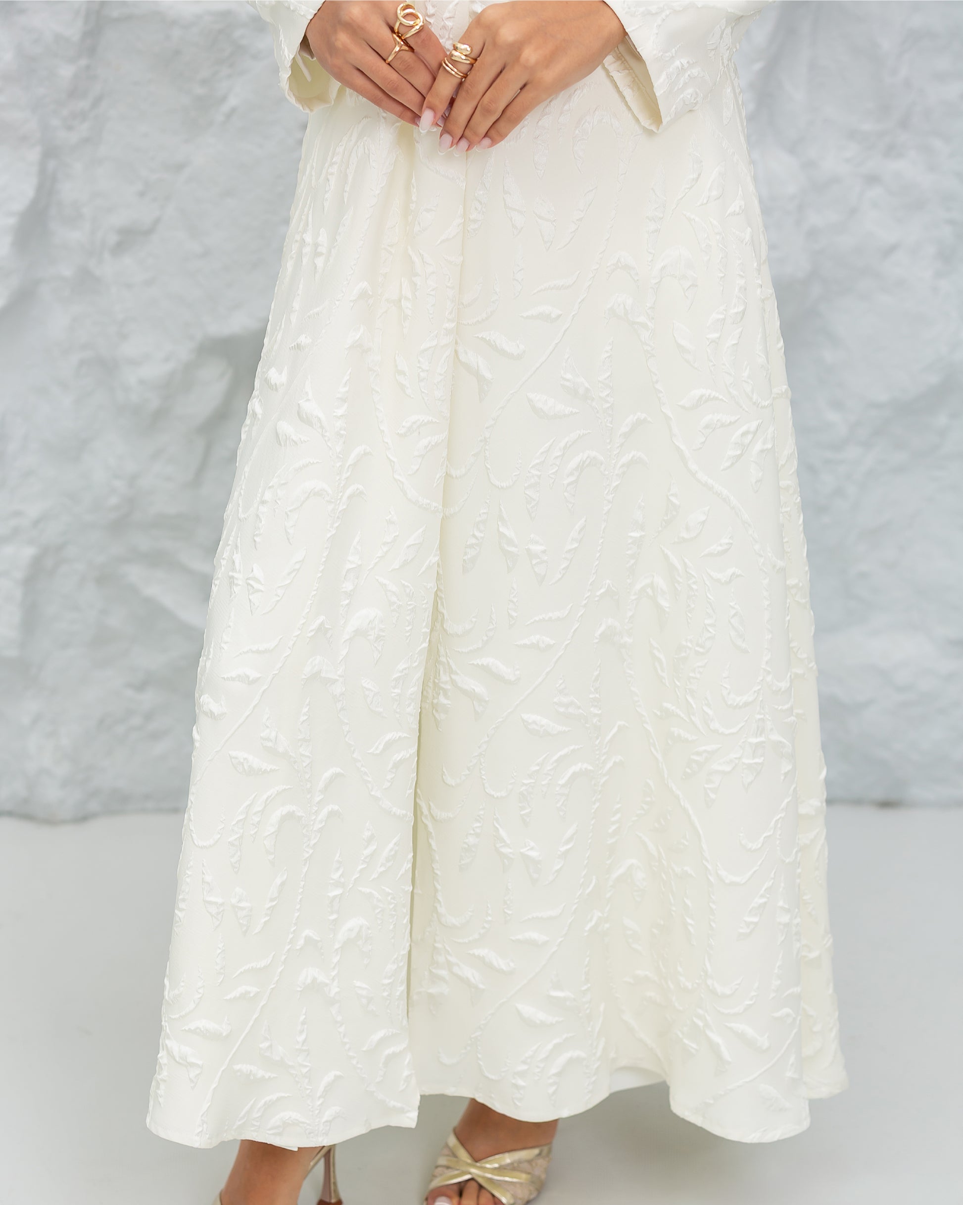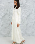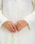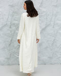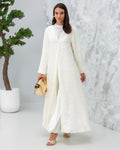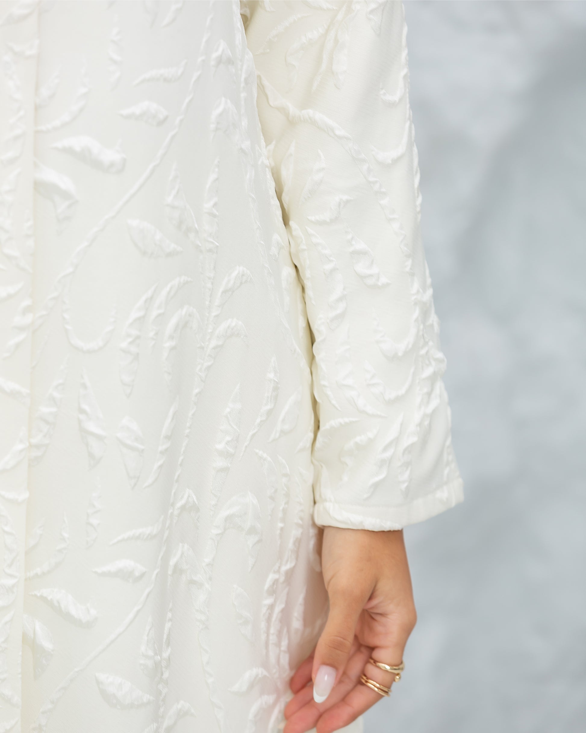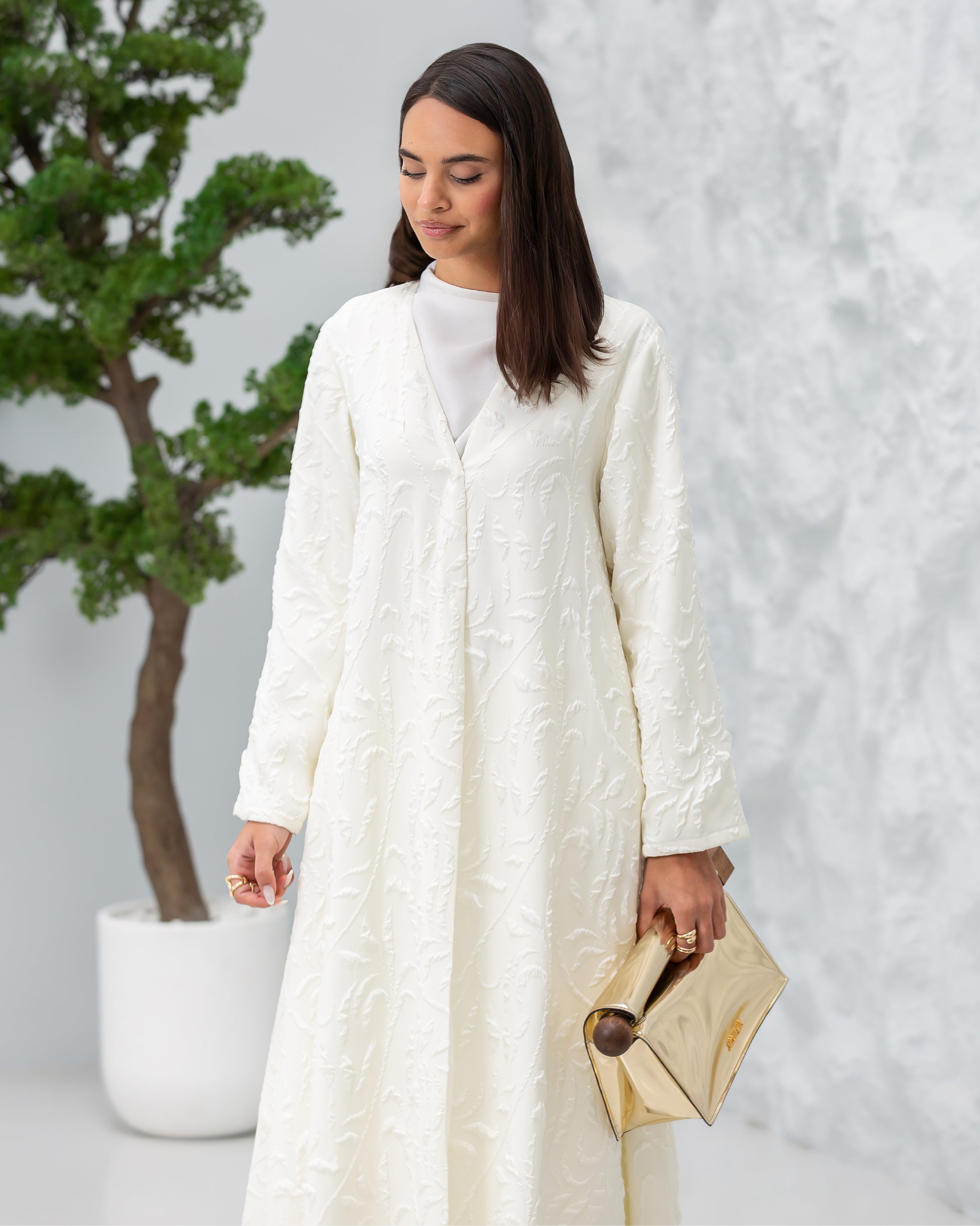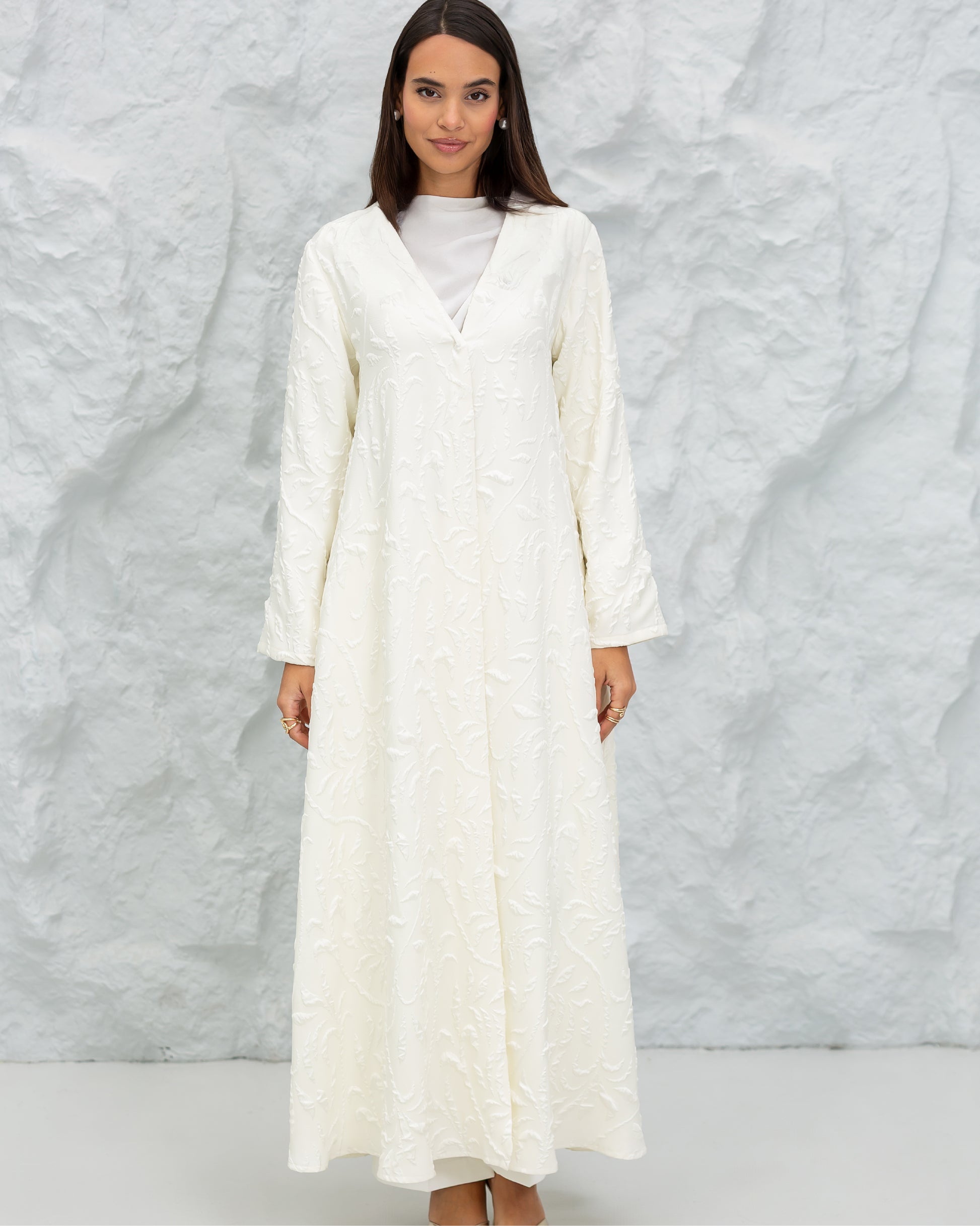 Double Flare Floral Embossed Crepe Abaya, Fully lined with a gold Tiktak Closure.