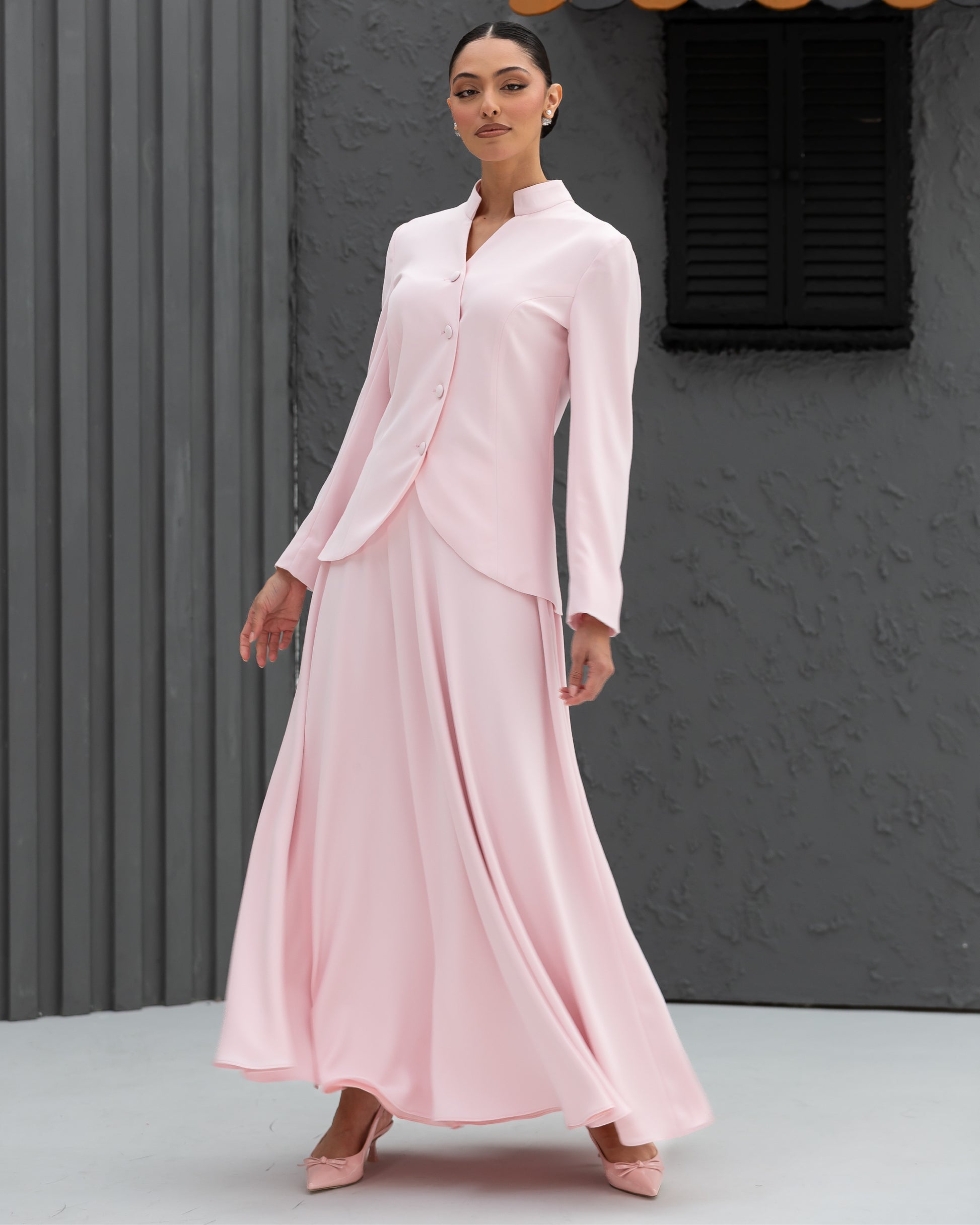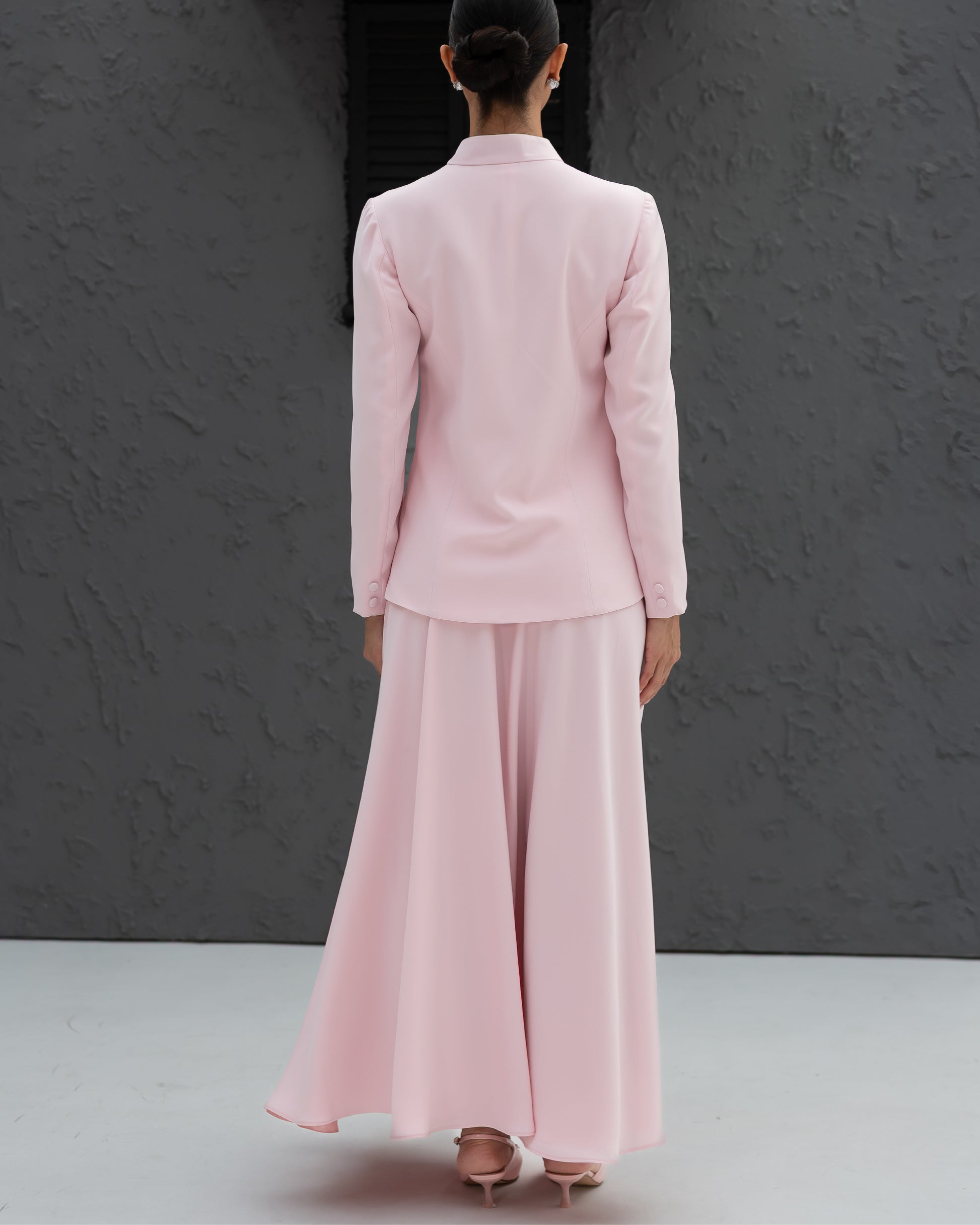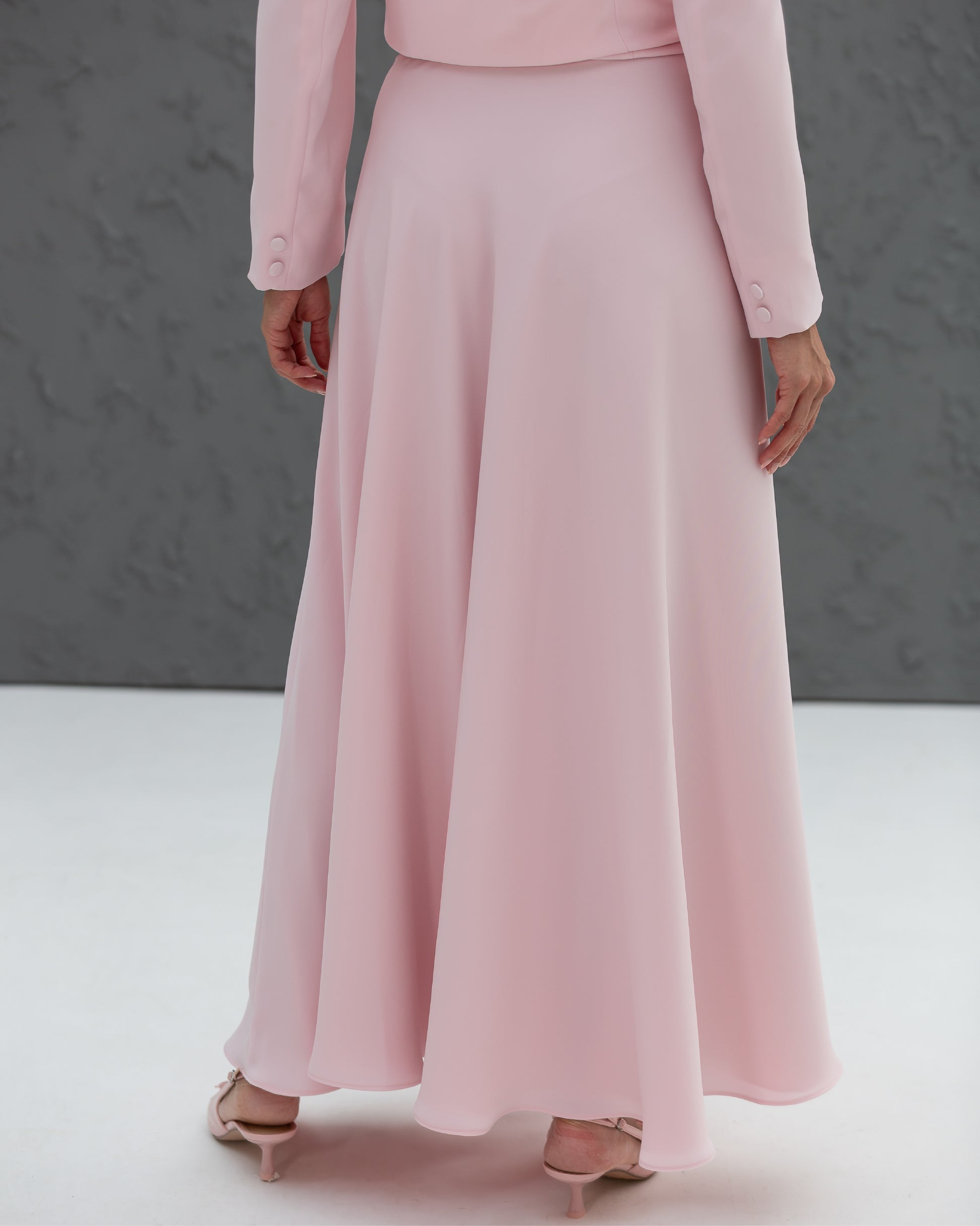 Pink Maxi Flowy Lined Skirt with Side Zipper
